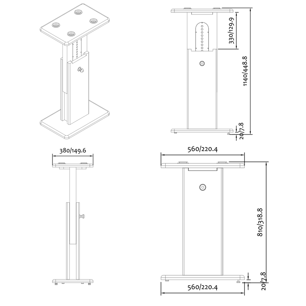 - Bardzo szeroka płyta górna (575 mm) dla głośników do 40 kg w pozycji bocznej