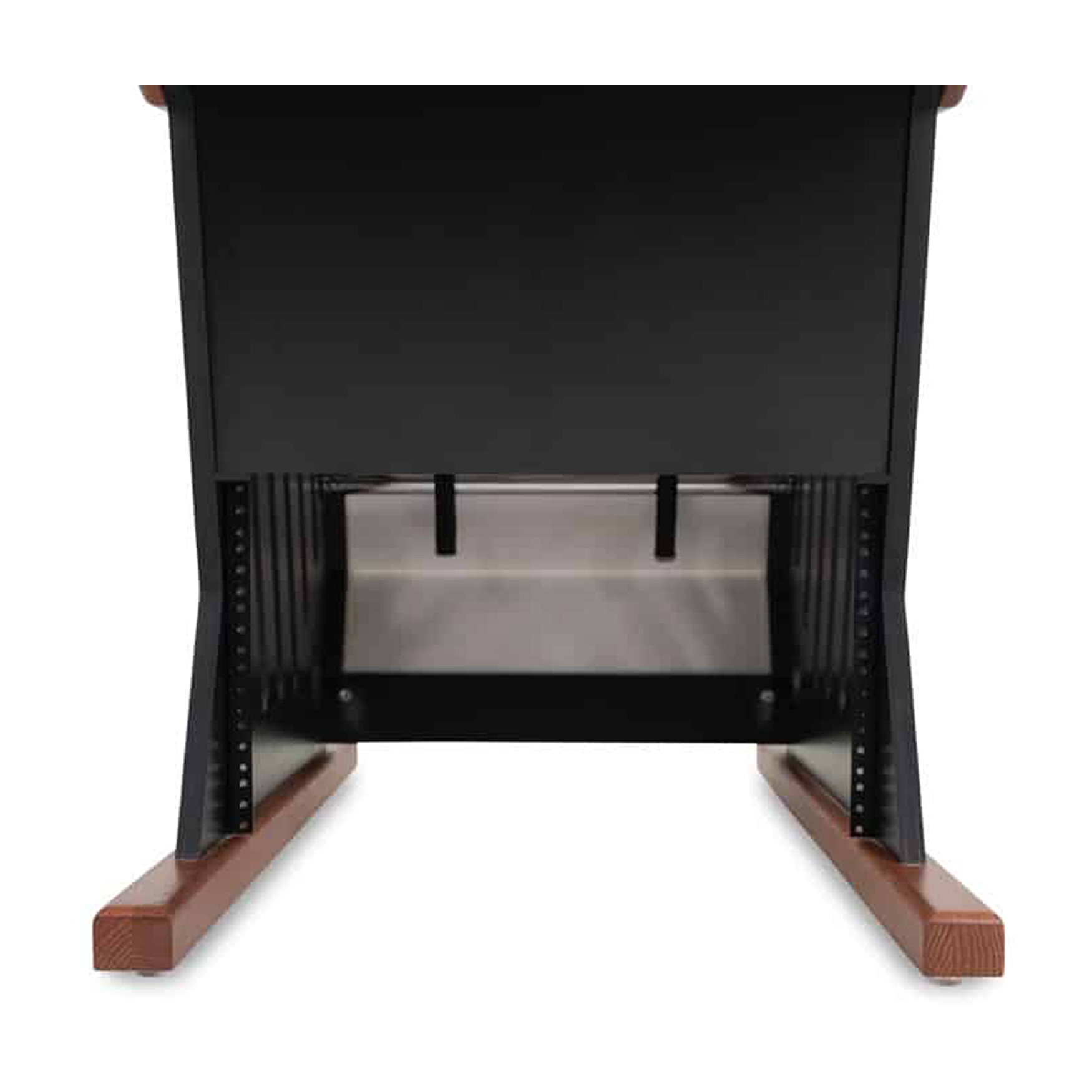 - Stojaki na głośniki: Obniżona półka za stojakami