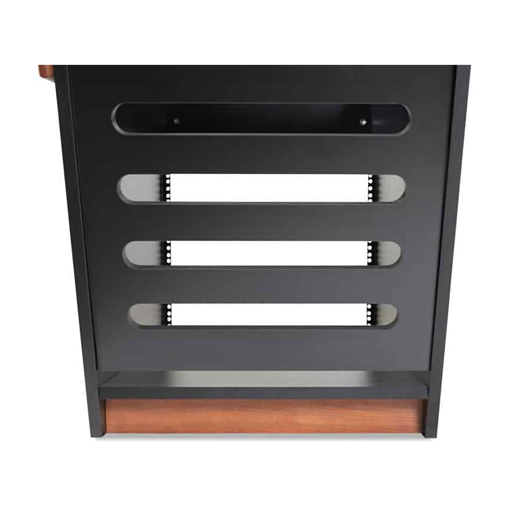 - 2 x 11 stojaków na górze z opcjonalnymi 6 RU na dole, z każdej strony