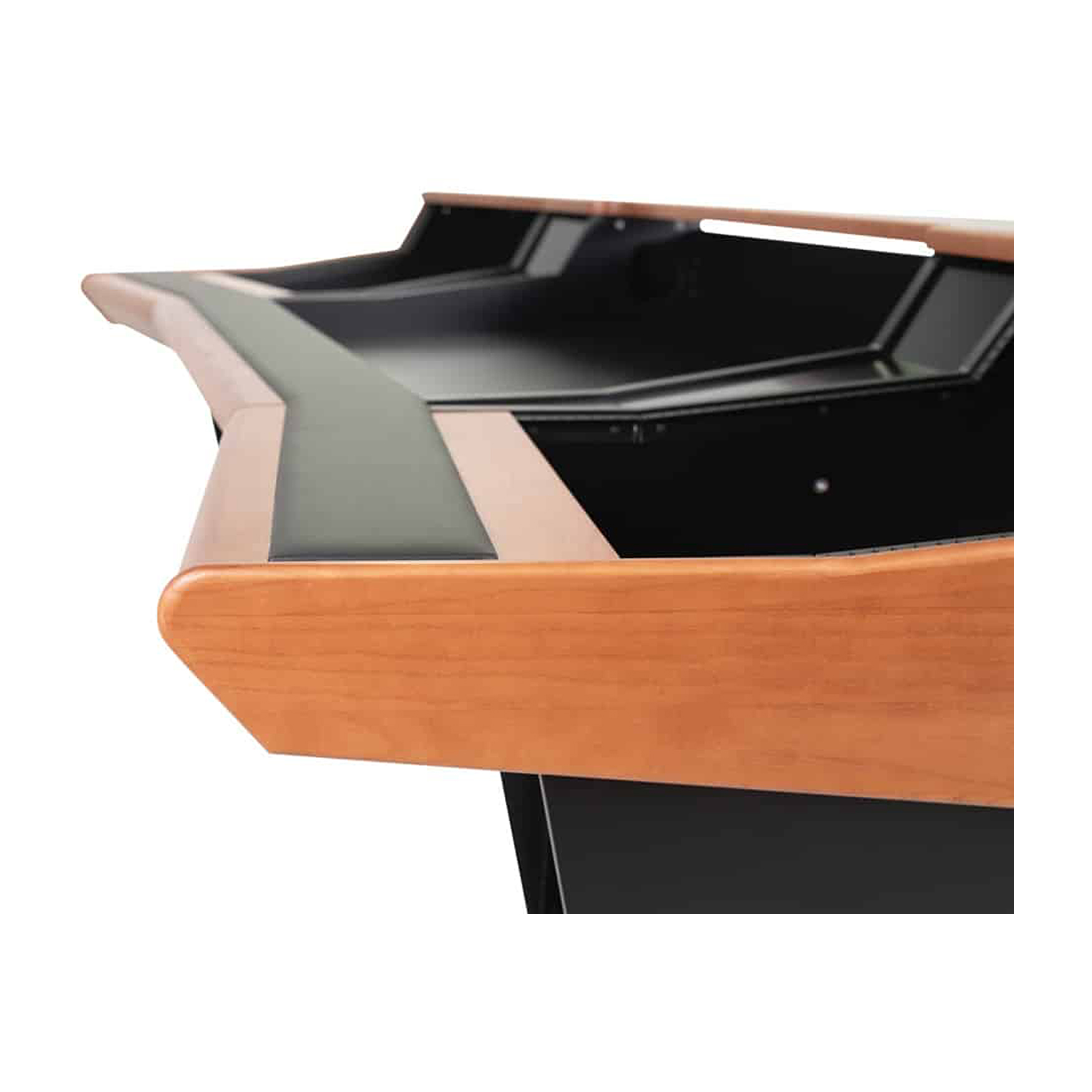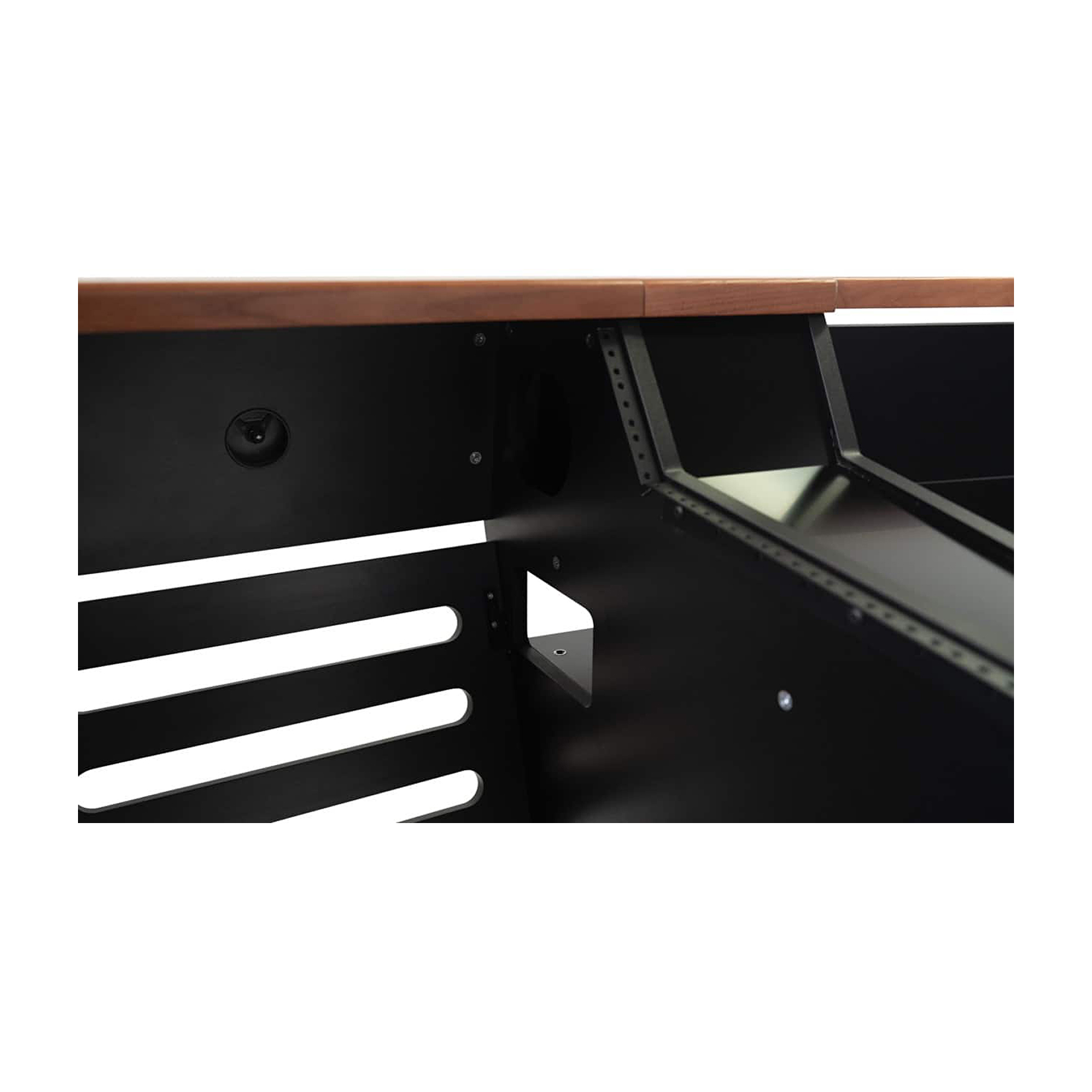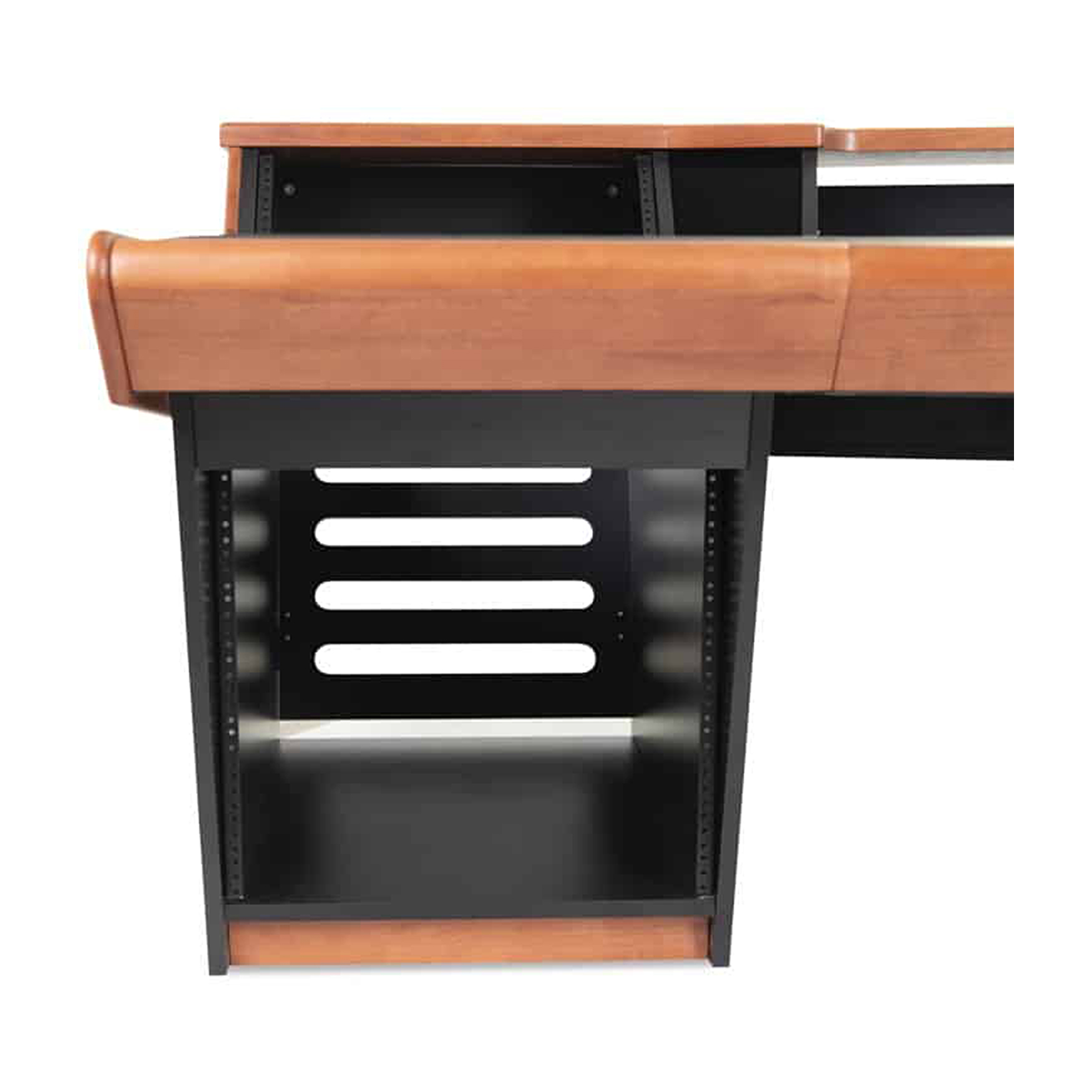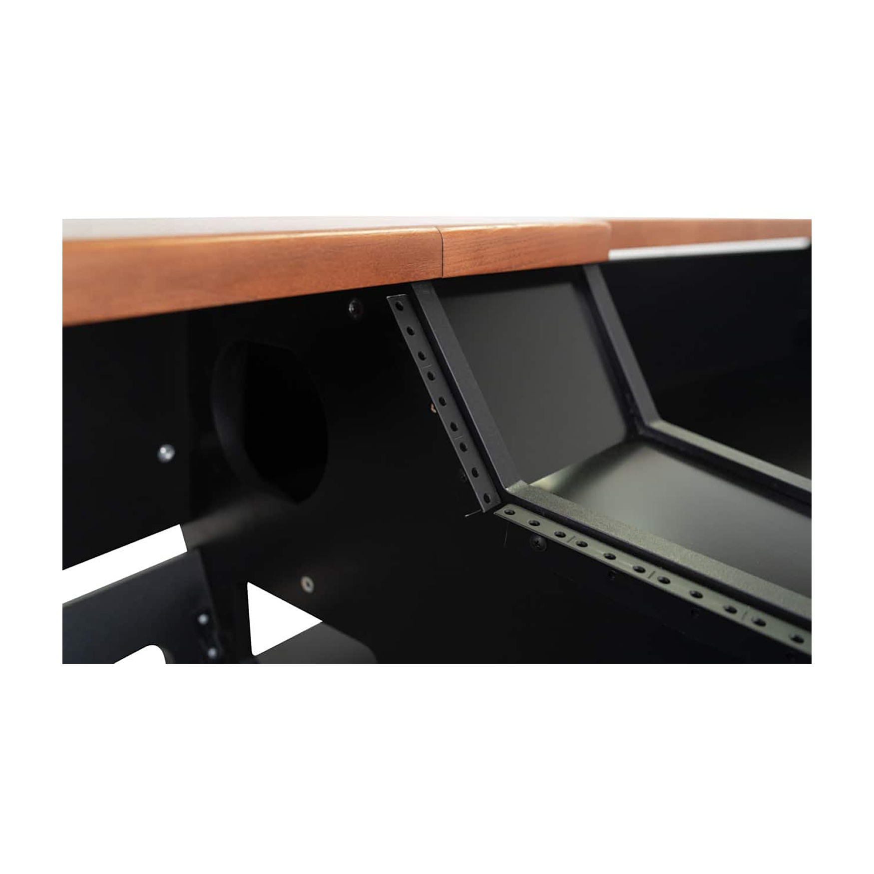 Konsola mikserska Matrix od legendarnego producenta Solid State Logic uosabia płynne połączenie analogowej i cyfrowej produkcji audio. Biurko Zaor Matrix osiąga na poziomie ergonomii to, co konsola robi na poziomie technicznym: mariaż analogowego sprzętu z nowoczesnym workflowem.Głównym punktem centralnym biurka Matrix jest duża kieszeń pośrodku, ukształtowana i wymierzona tak, aby idealnie pomieścić tytułowy element SSL. Następnie Zaor zbudował środowisko zoptymalizowane pod kątem przepływu pracy wokół centralnej hybrydowej konsoli studyjnej. Z jedenastoma jednostkami rack po każdej stronie, jest mnóstwo miejsca na biurku dla wszystkich cenionych procesorów audio, które sprawiają, że praca ze sprzętem analogowym jest tak pożądana. SSL Matrix może zintegrować do szesnastu urządzeń sprzętowych jako efekty insertowe, a Zaor Matrix może pomieścić je wszystkie i wygodnie umieścić w zasięgu ręki.Więcej jednostek rack i opcjonalne szuflady pod pulpitem zwiększają wszechstronność. Podwyższona półka na ekrany komputerowe i głośniki monitora, a także wygodny podłokietnik z wystarczającą ilością miejsca na mysz i klawiaturę uzupełniają hybrydowy pakiet studyjny. Rozbudowane zarządzanie kablami i zastosowanie doskonałego drewna podkreślają zaangażowanie Zaor w jakość i sprawiają, że Matrix jest idealnym biurkiem dla hybrydowego studia zasilanego przez SSL.Cechy