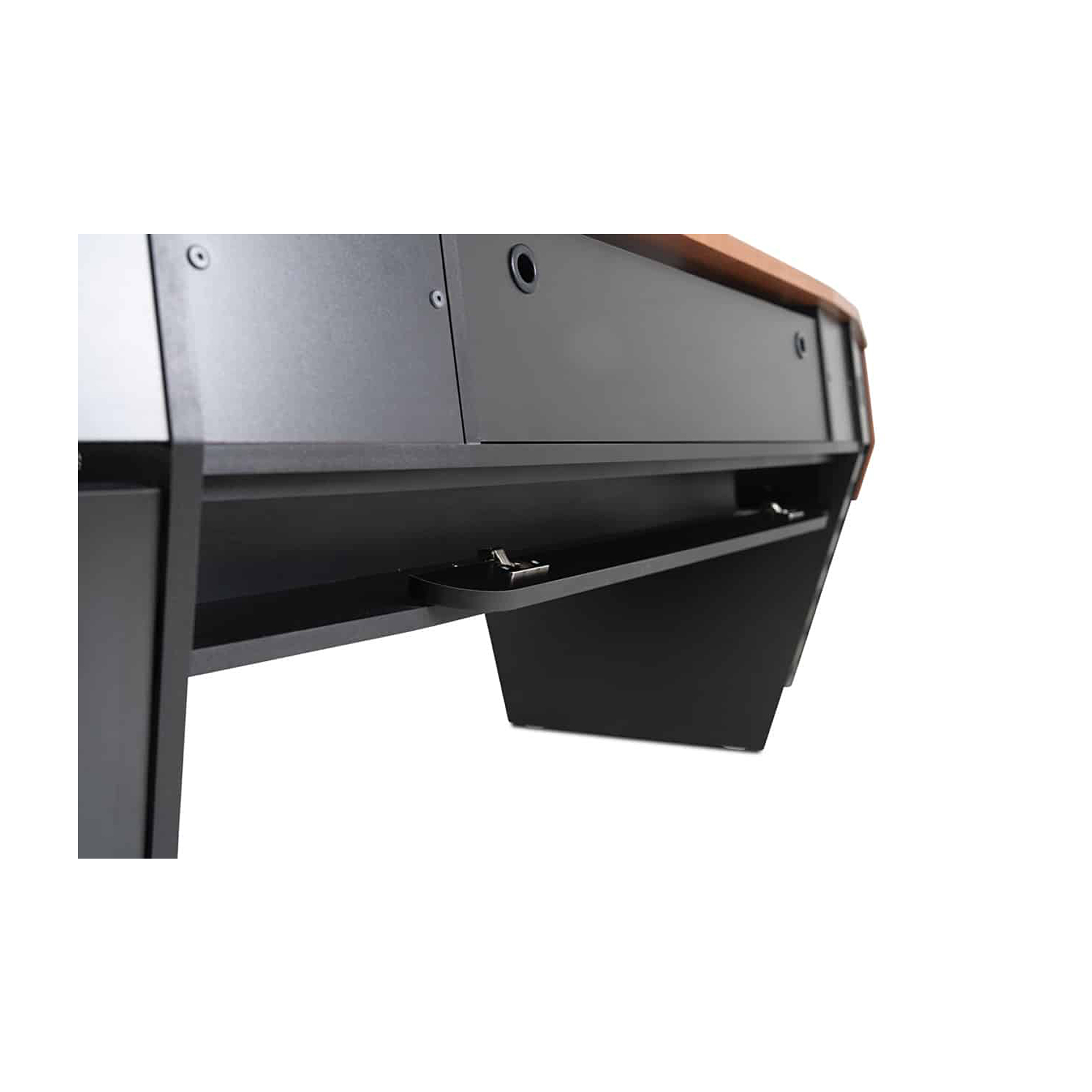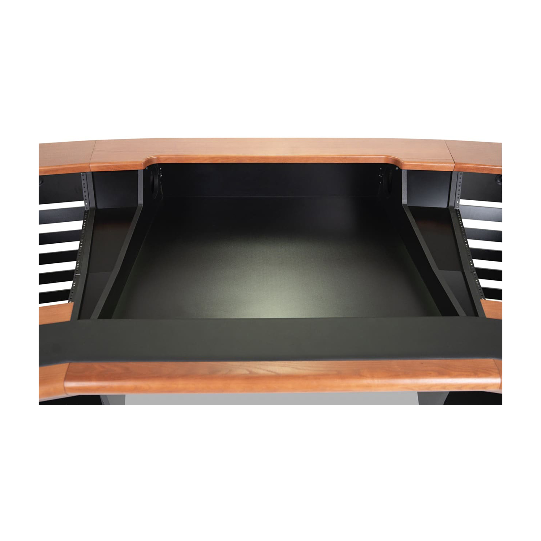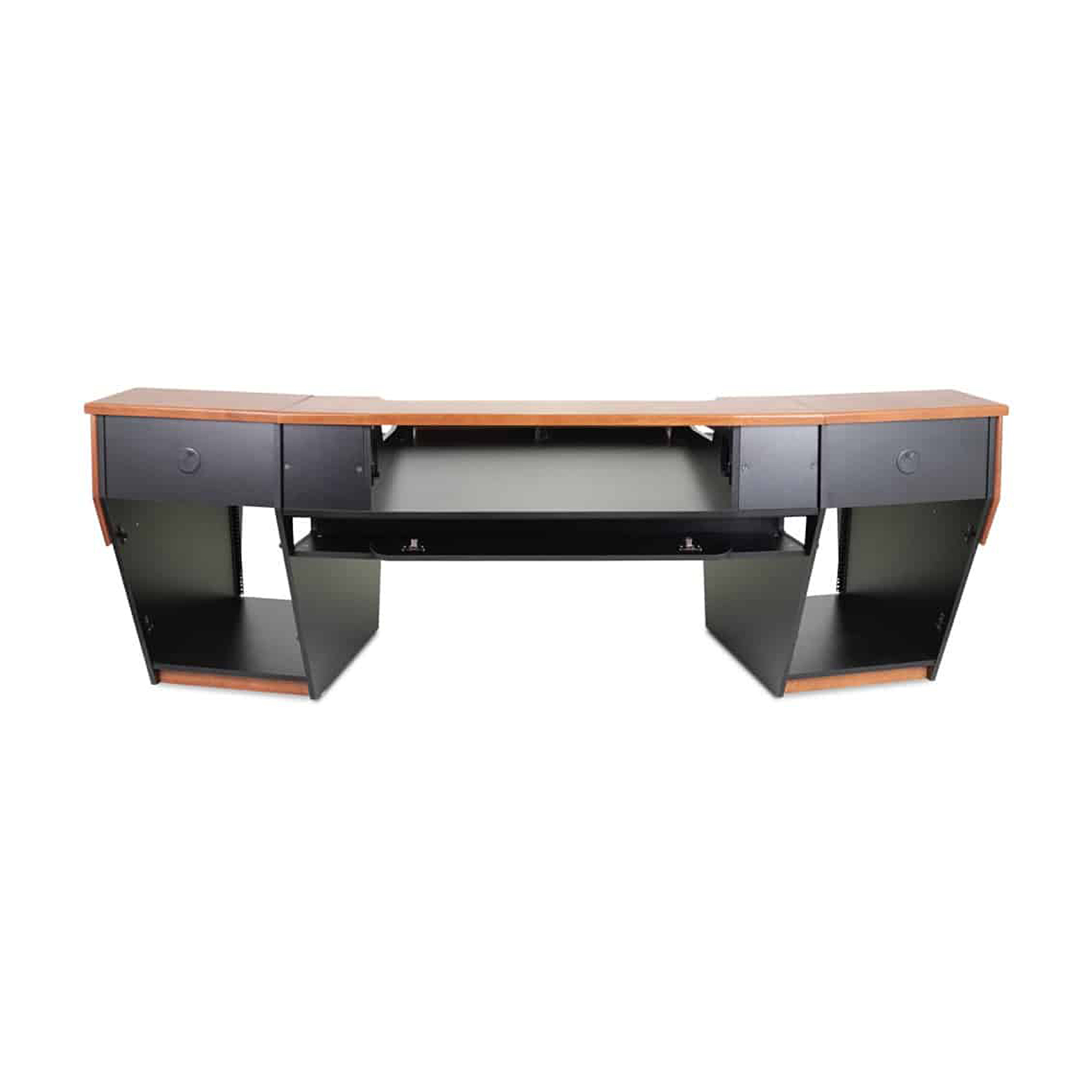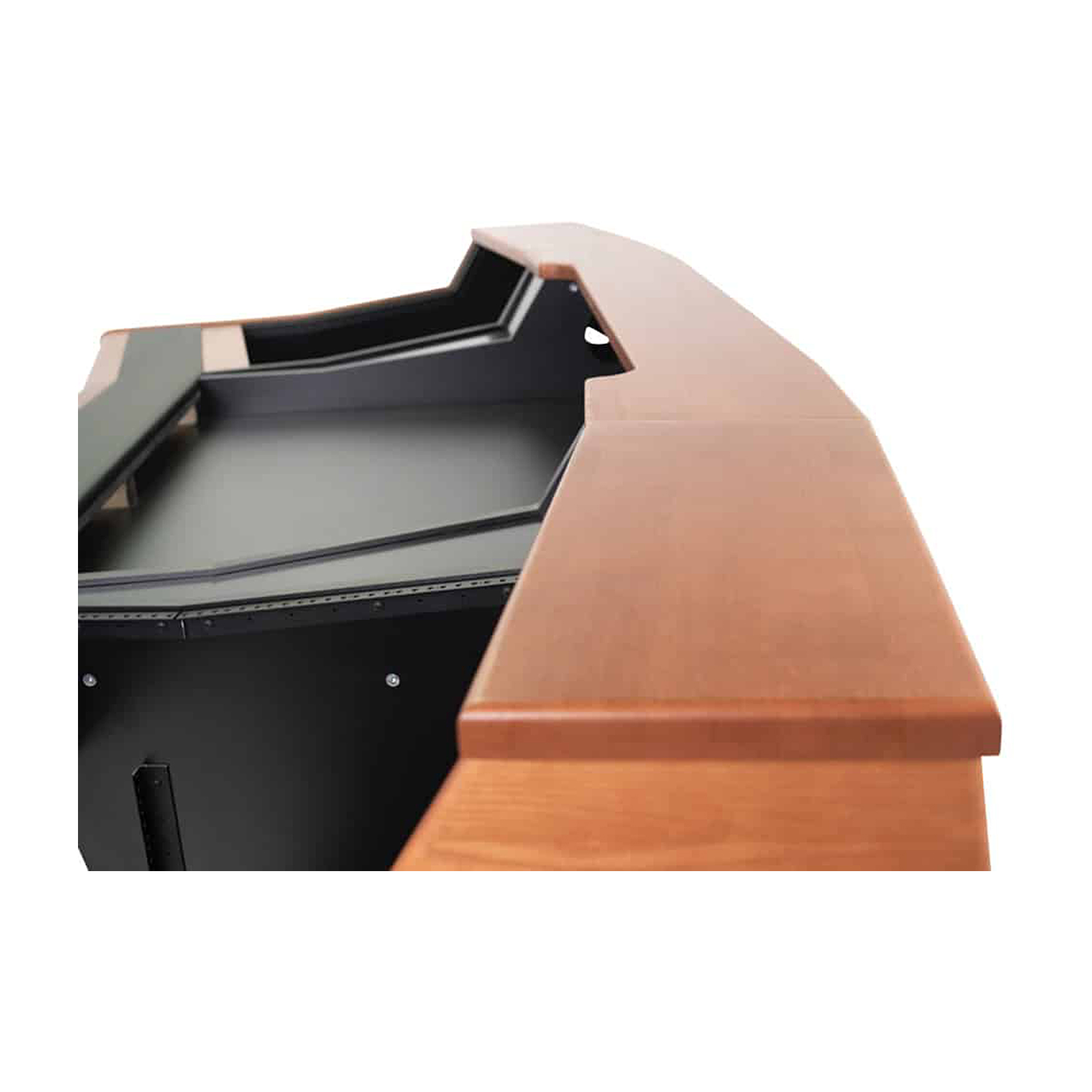 Konsola mikserska Matrix od legendarnego producenta Solid State Logic uosabia płynne połączenie analogowej i cyfrowej produkcji audio. Biurko Zaor Matrix osiąga na poziomie ergonomii to, co konsola robi na poziomie technicznym: mariaż analogowego sprzętu z nowoczesnym workflowem.Głównym punktem centralnym biurka Matrix jest duża kieszeń pośrodku, ukształtowana i wymierzona tak, aby idealnie pomieścić tytułowy element SSL. Następnie Zaor zbudował środowisko zoptymalizowane pod kątem przepływu pracy wokół centralnej hybrydowej konsoli studyjnej. Z jedenastoma jednostkami rack po każdej stronie, jest mnóstwo miejsca na biurku dla wszystkich cenionych procesorów audio, które sprawiają, że praca ze sprzętem analogowym jest tak pożądana. SSL Matrix może zintegrować do szesnastu urządzeń sprzętowych jako efekty insertowe, a Zaor Matrix może pomieścić je wszystkie i wygodnie umieścić w zasięgu ręki.Więcej jednostek rack i opcjonalne szuflady pod pulpitem zwiększają wszechstronność. Podwyższona półka na ekrany komputerowe i głośniki monitora, a także wygodny podłokietnik z wystarczającą ilością miejsca na mysz i klawiaturę uzupełniają hybrydowy pakiet studyjny. Rozbudowane zarządzanie kablami i zastosowanie doskonałego drewna podkreślają zaangażowanie Zaor w jakość i sprawiają, że Matrix jest idealnym biurkiem dla hybrydowego studia zasilanego przez SSL.Cechy