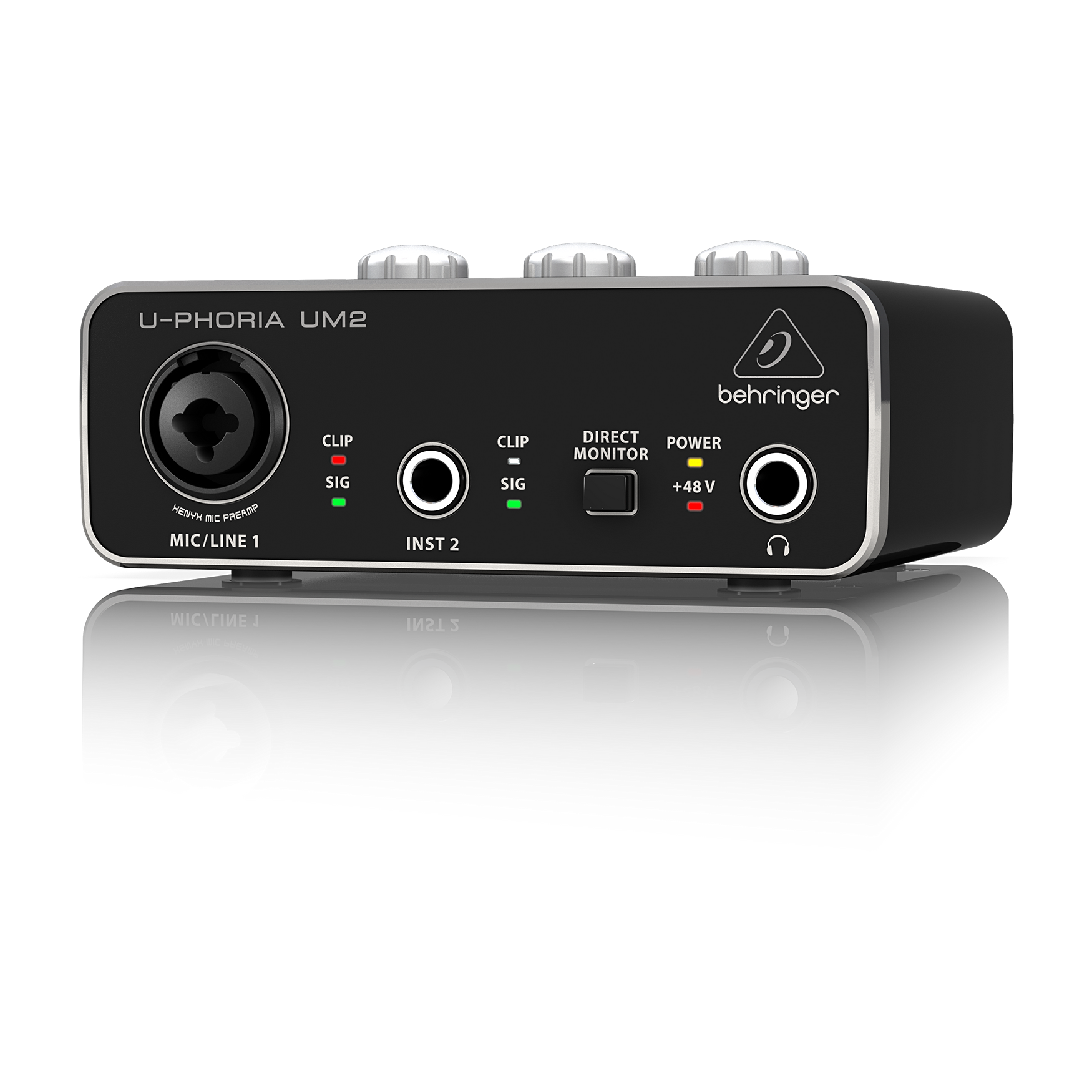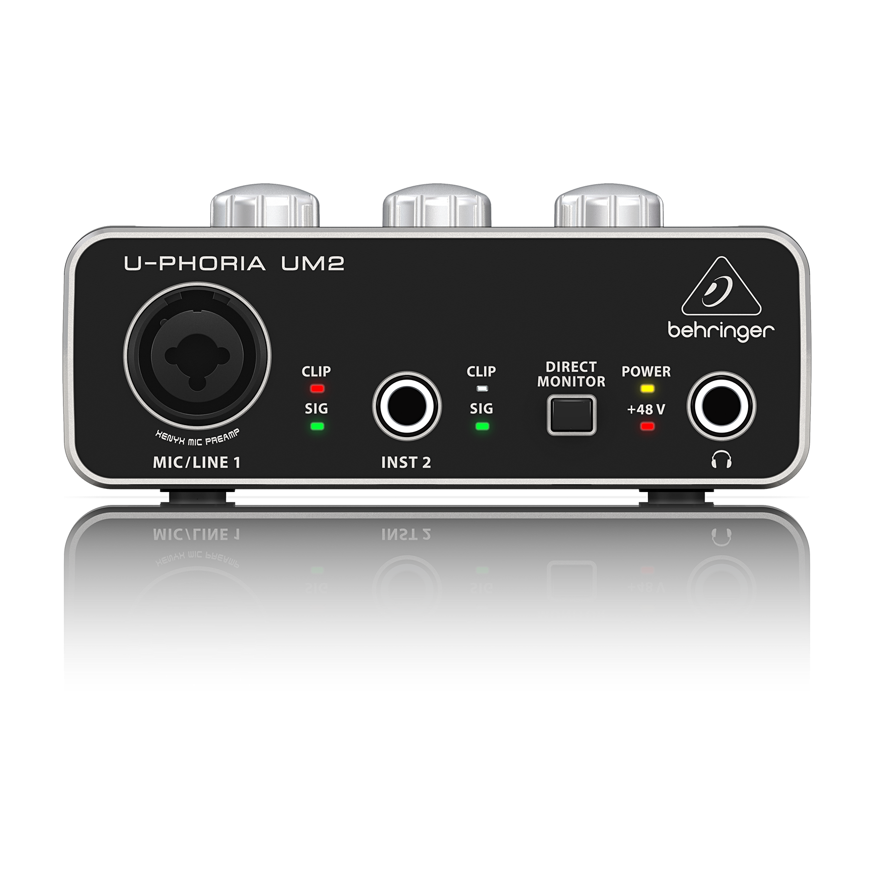 Behringer U-PHORIA UM2 to ultrakompaktowy interfejs audio USB 2x2, który łączy w sobie prostotę obsługi i studyjną jakość nagrań. Wyposażony w przedwzmacniacz mikrofonowy XENYX klasy premium, rozdzielczość 48 kHz oraz wyjście słuchawkowe o dużej mocy, UM2 jest idealnym wyborem dla muzyków, podcasterów i twórców domowych studiów.