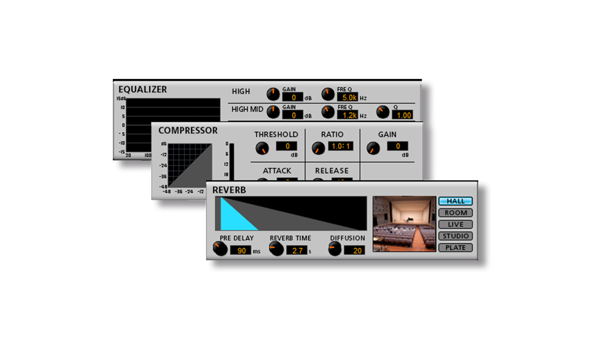 - Wbudowany moduł efektów: pogłos, kompresor, 4-pasmowa korekcja