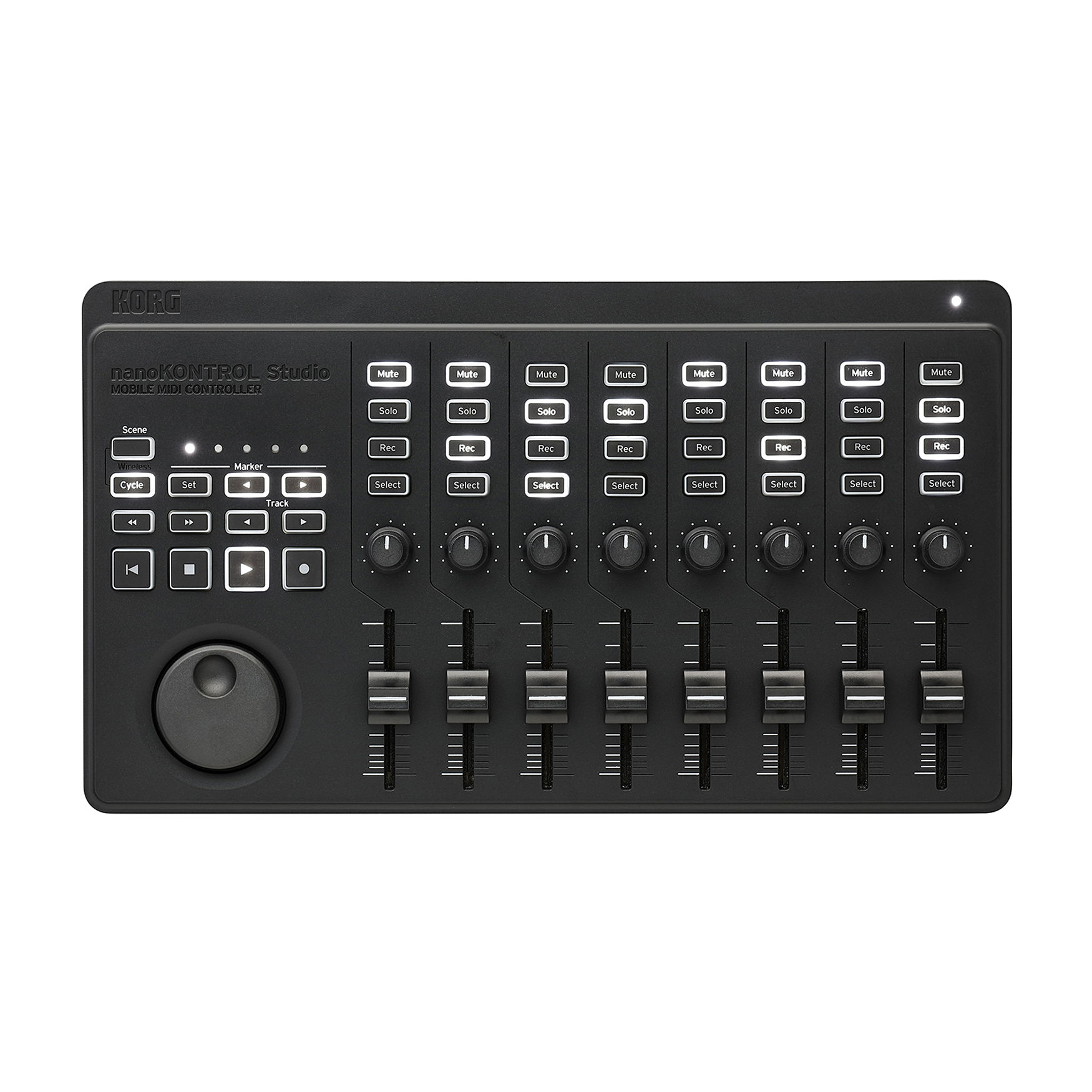 Korg nanoKontrol Studio to kompaktowy, mobilny kontroler MIDI, stworzony z myślą o domowych studiach oraz mobilnej pracy muzycznej. Umożliwia bezprzewodową kontrolę wszystkich parametrów oprogramowania DAW oraz programów wspierających MIDI, w tym aplikacji DJ-skich takich jak TRAKTOR czy SERATO.