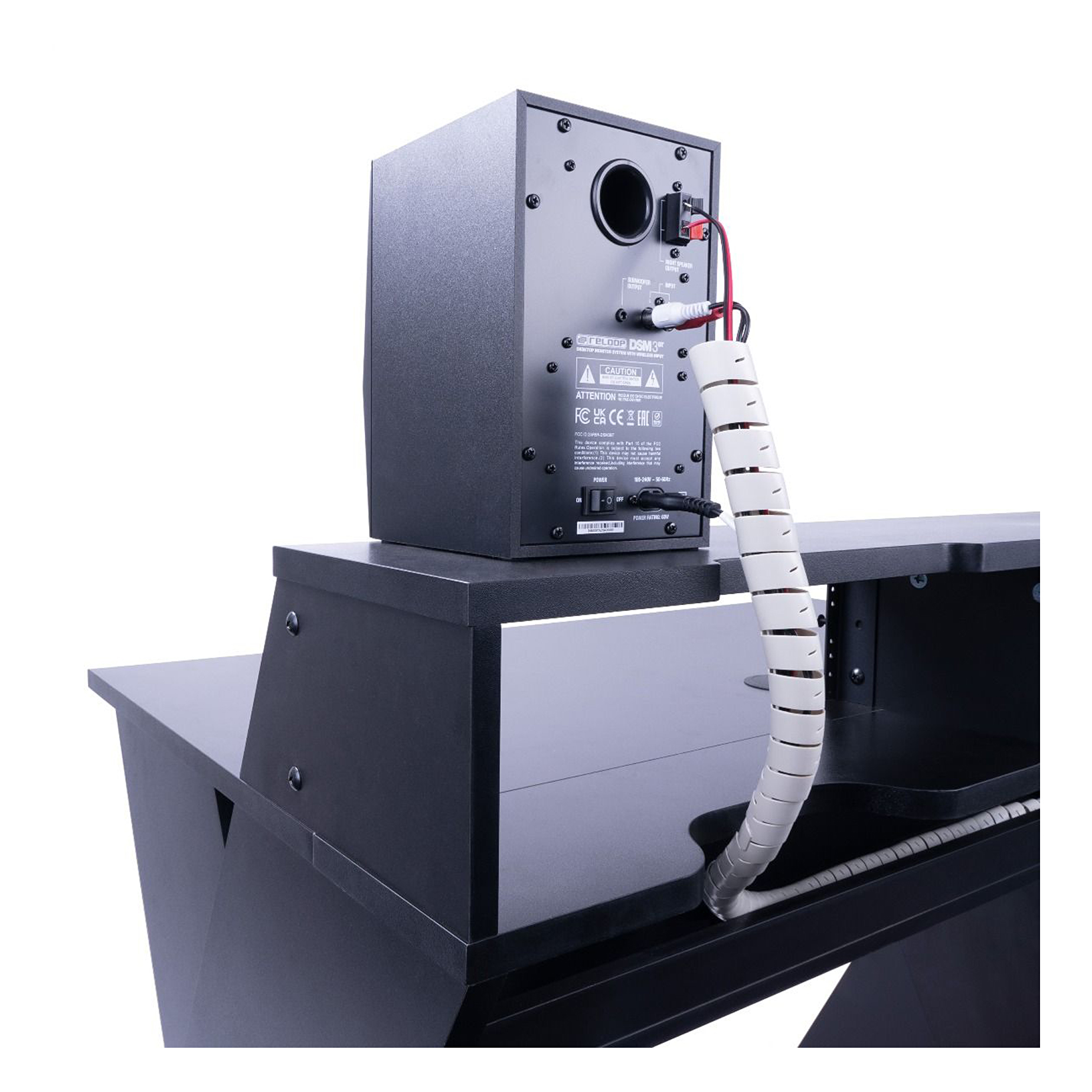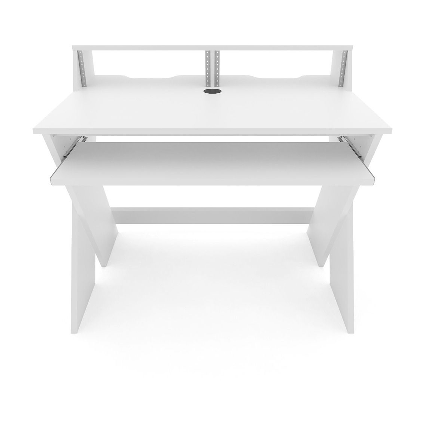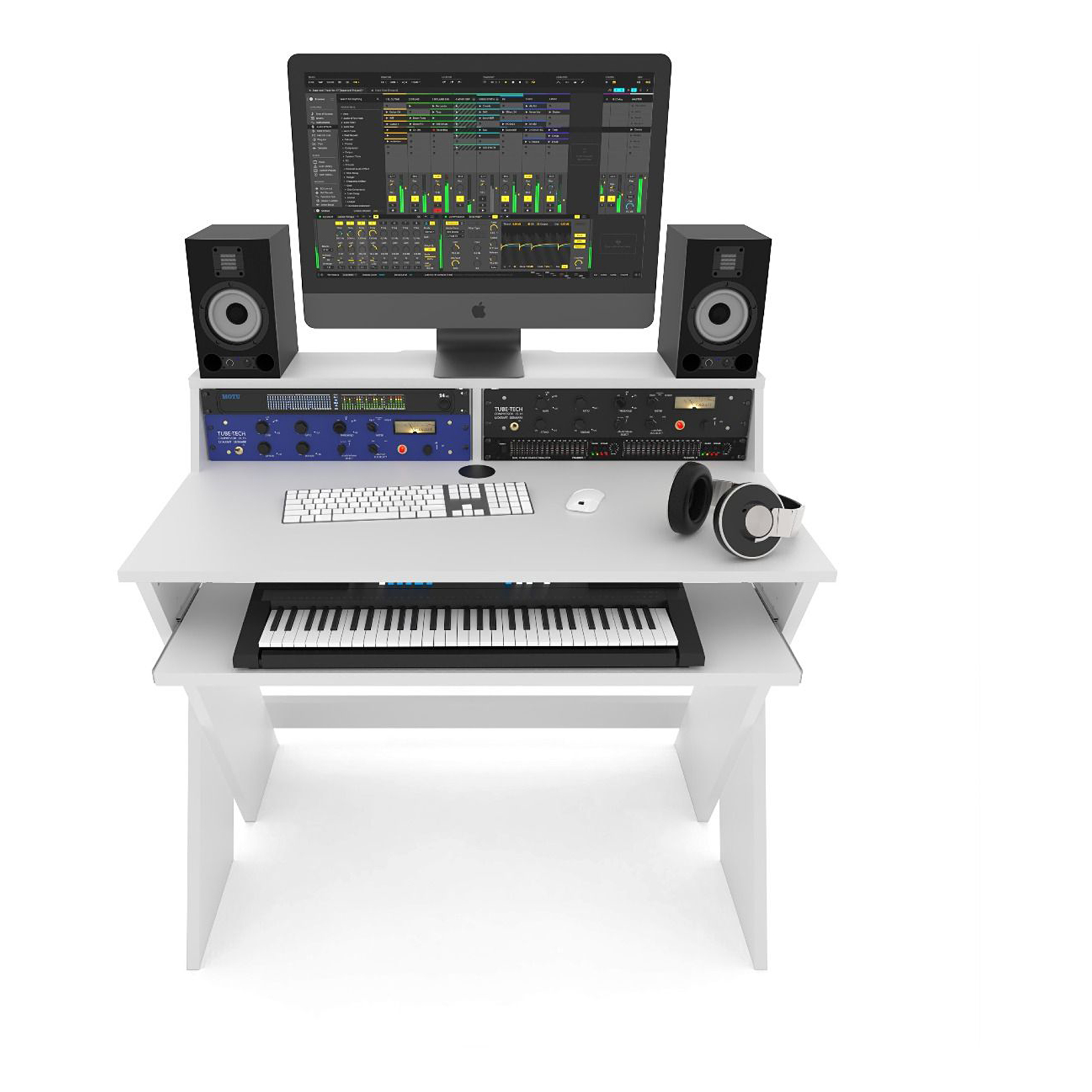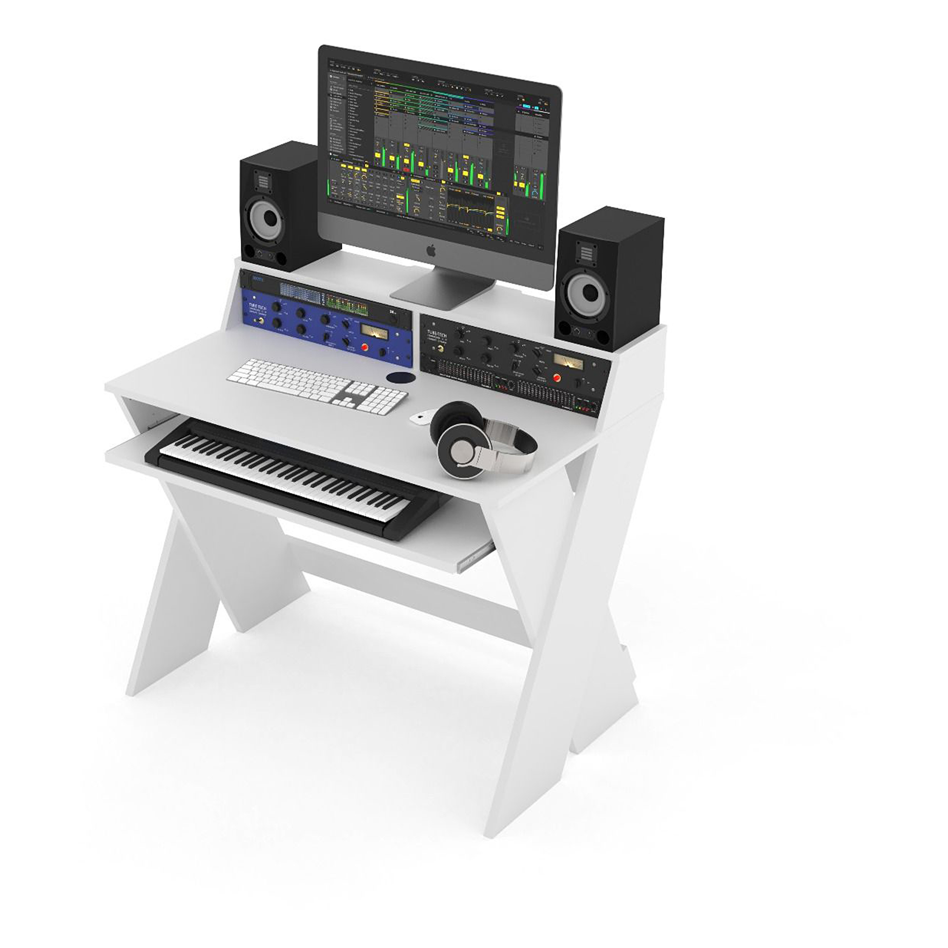 Sprytnie zaprojektowane stanowisko studyjne zapewnia miejsce na monitory studyjne na poziomie uszu i ekran na poziomie oczu. Bezpośrednio poniżej, na dwóch stojakach 3U, znajduje się miejsce na 19" sprzęt zewnętrzny, dzięki czemu nic nie zakłóca procesu twórczego.