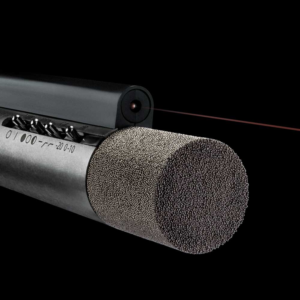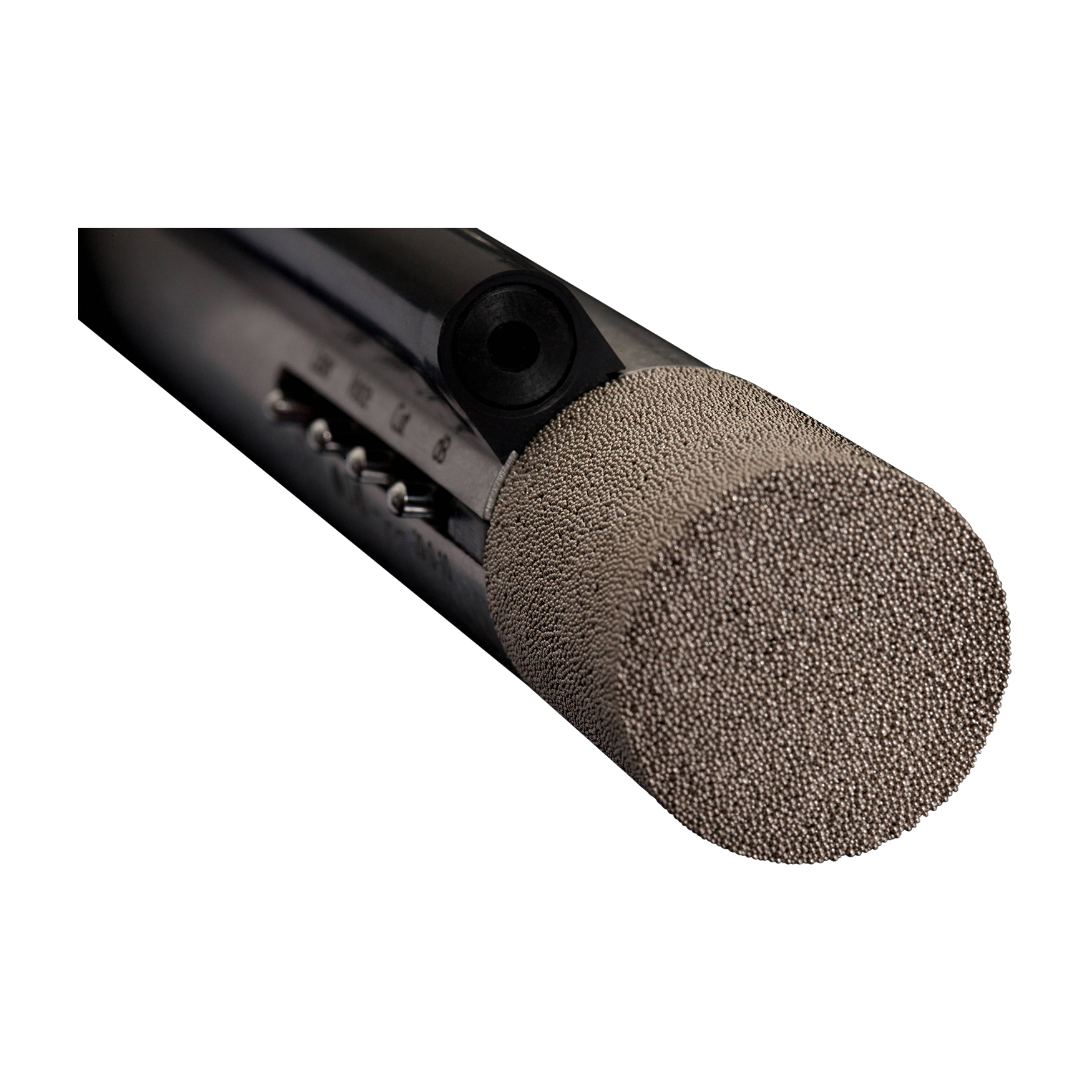 Spiekanie nie jest nową metodą w świecie mikrofonów, ale rzadko używaną. Aston wzniósł tę technologię o poziom lub nawet dwa wyżej. Przetestowano wiele grubości spiekanych główek, a także średnie wielkości łożysk kulkowych, połączono to z niklowaną płytką, której grubość kontrolowana jest co do nanometra. Pozwoliło to uzyskać idealną akustyczną porowatość. Dodatkowo główka jest praktycznie niezniszczalna, więc - jak wszystkie mikrofony Astona – można ją stosować w studiu czy na żywo wiele razy i nigdy nas nie zawiedzie.