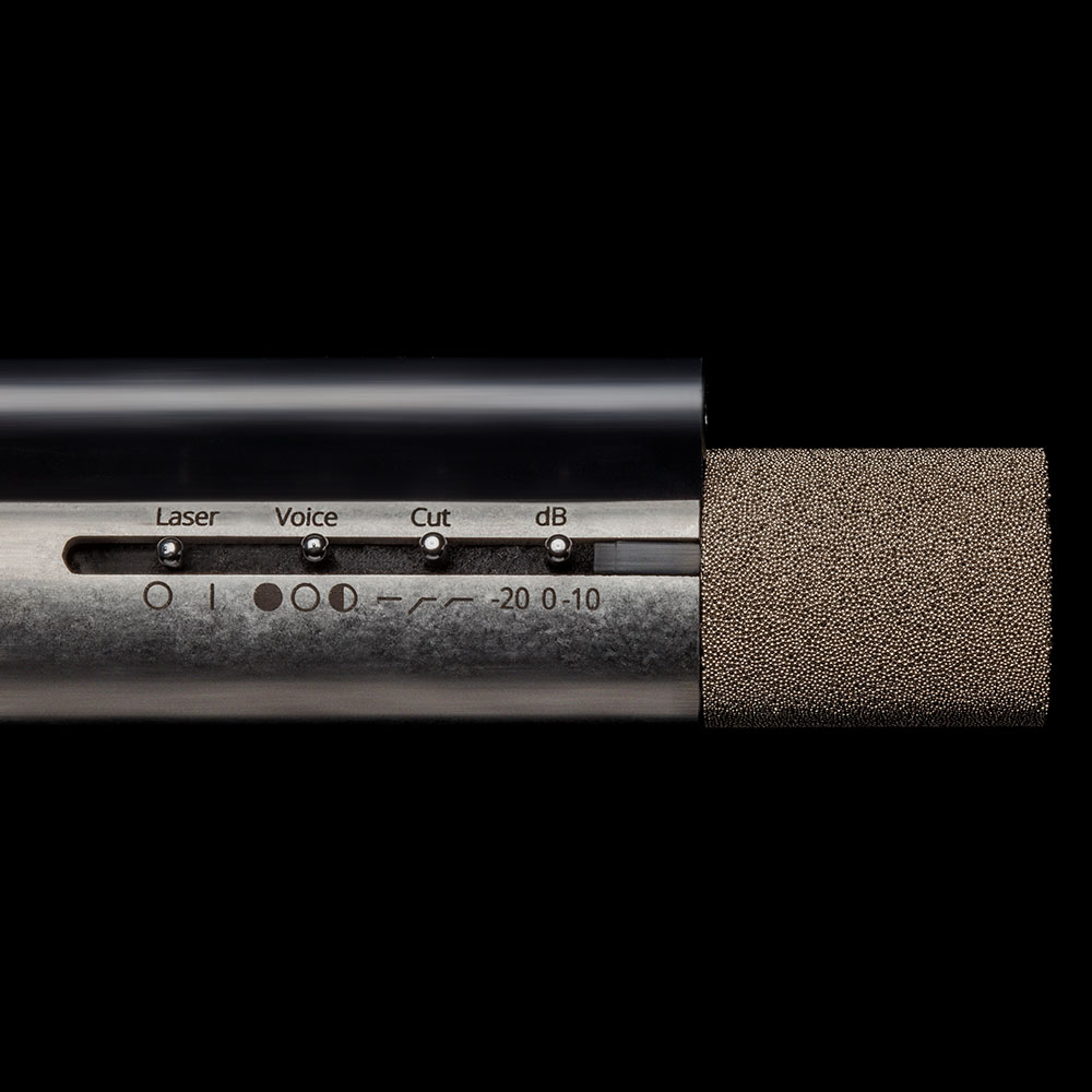 Dodanie do naszego mikrofonu wskaźnika laserowego z włącznikiem on/off pozwala użytkownikowi przywołać dokładne ustawienie mikrofonu, zatem łatwo powtórzyć set up. Ma to również duże znaczenie dla podróżujących zespołów, ponieważ można oznaczyć pozycję mikrofonu dla bębnów, gitar etc., więc set up trwa dosłownie chwilę. To pierwsze takie rozwiązanie w świecie i ogromny skok w uzyskaniu spójnego dźwięku niezależnie od sytuacji.