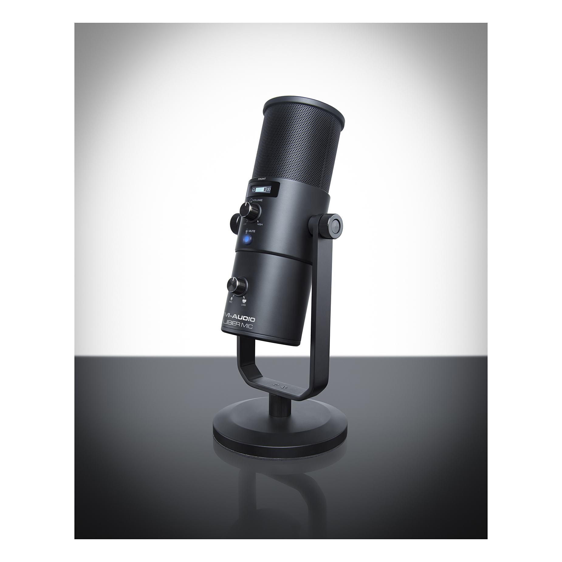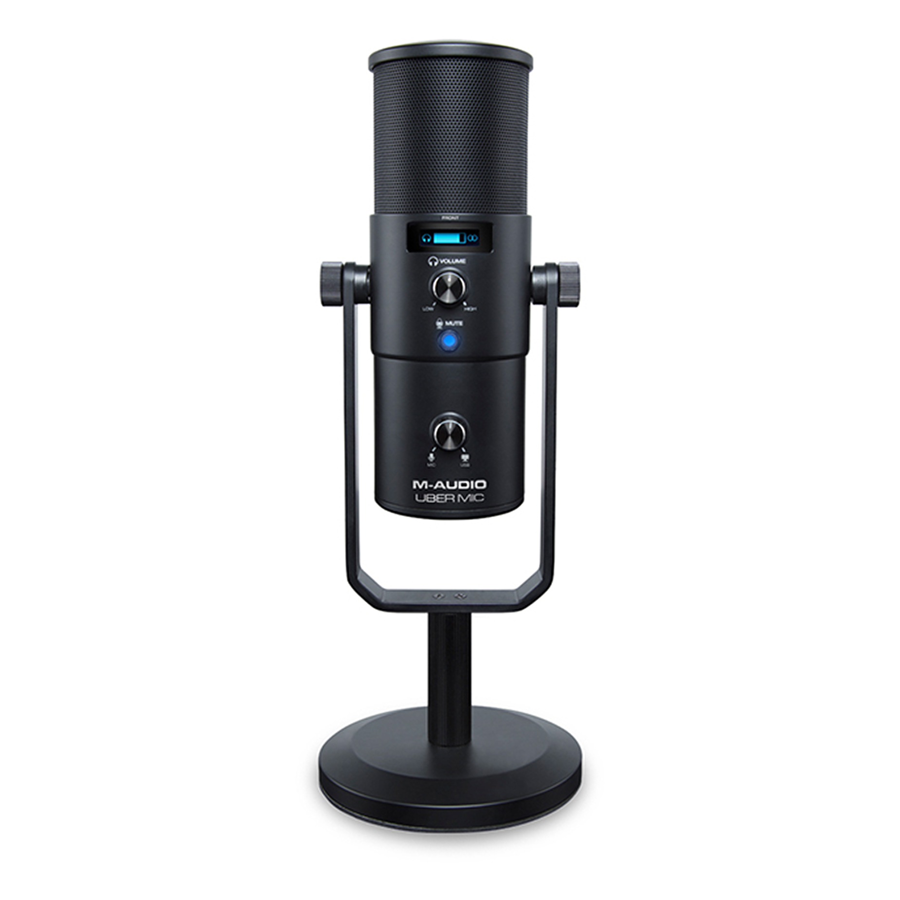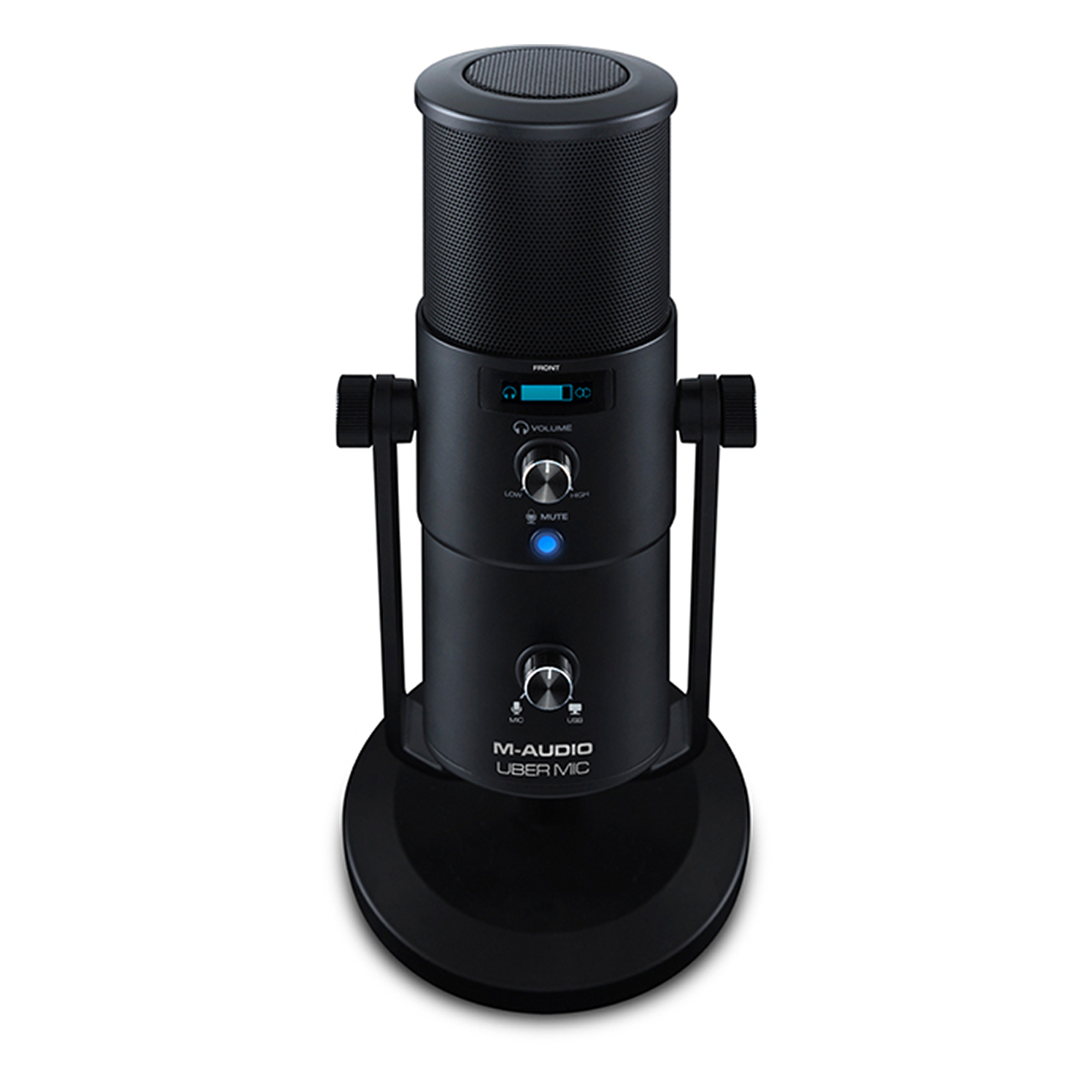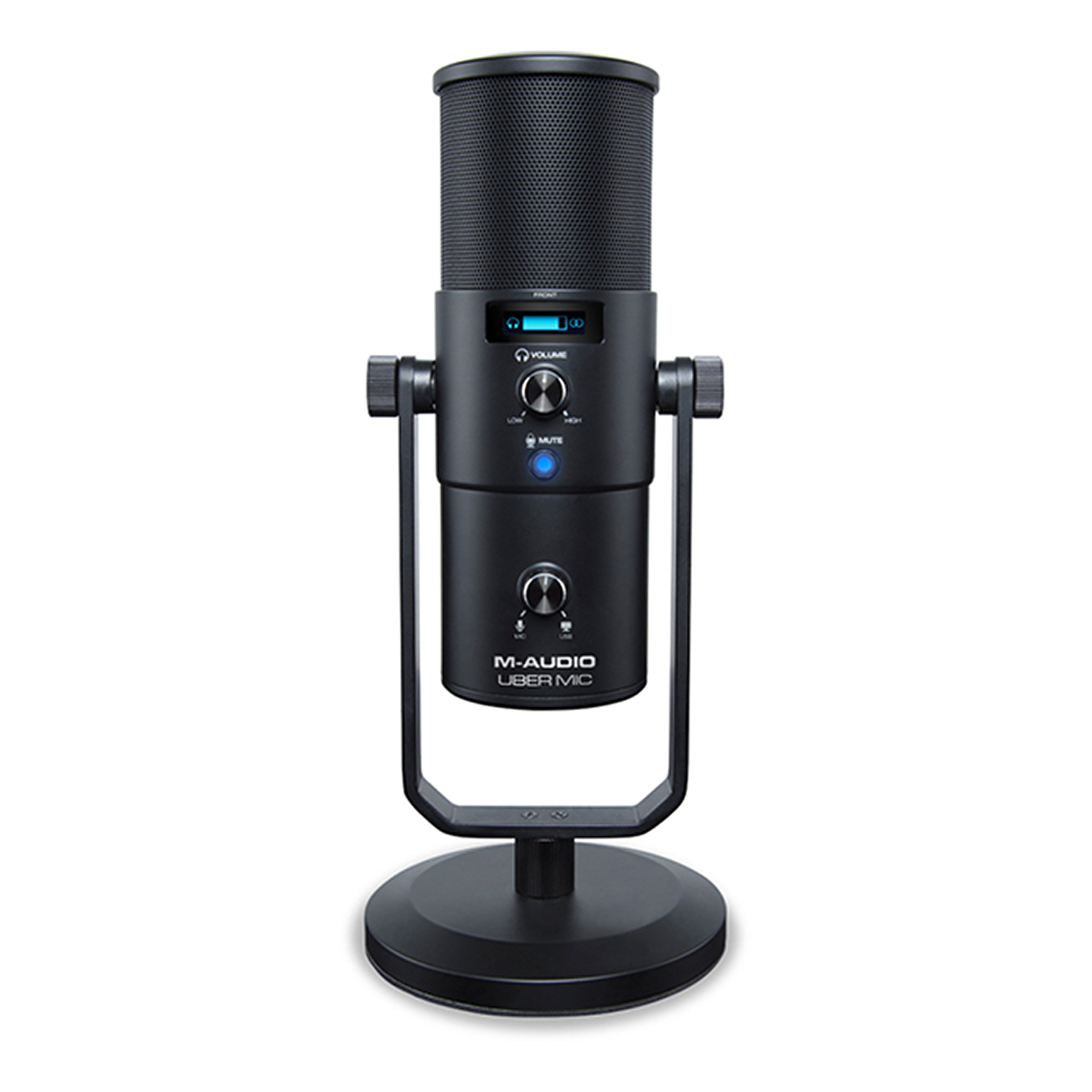 M-Audio Uber Mic – 3-kapsułowy mikrofon pojemnościowy USB, kompatybilny z Mac, PC i iOS. Uber Mic posiada przetwornik 16-bitowy/48kHz oraz wiele funkcji, które użytkownik może dowolnie regulować w tym: 4 charakterystyki kierunkowości, wyjście słuchawkowe z regulacją głośności, przycisk mute, regulacja poziomu wybranego kontrolera oraz wyświetlacz LED.