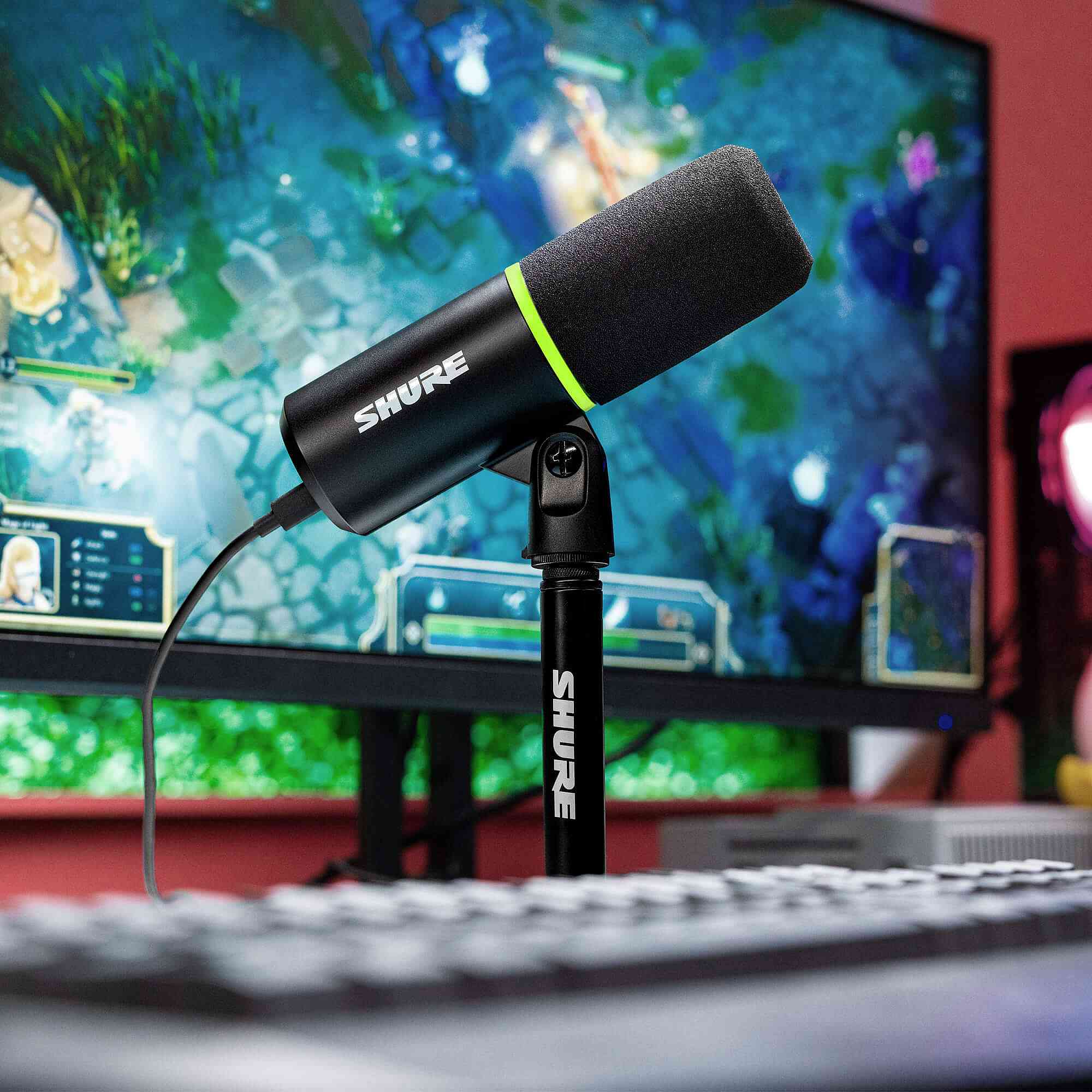 - Shure MV6 obsługuje nowoczesne konfiguracje z wyjściem USB-C do podłączenia do urządzeń PC i Mac oraz wyjściem 3,5 mm do monitorowania słuchawek w czasie rzeczywistym, konfigurowanym za pomocą aplikacji MOTIV Mix™.