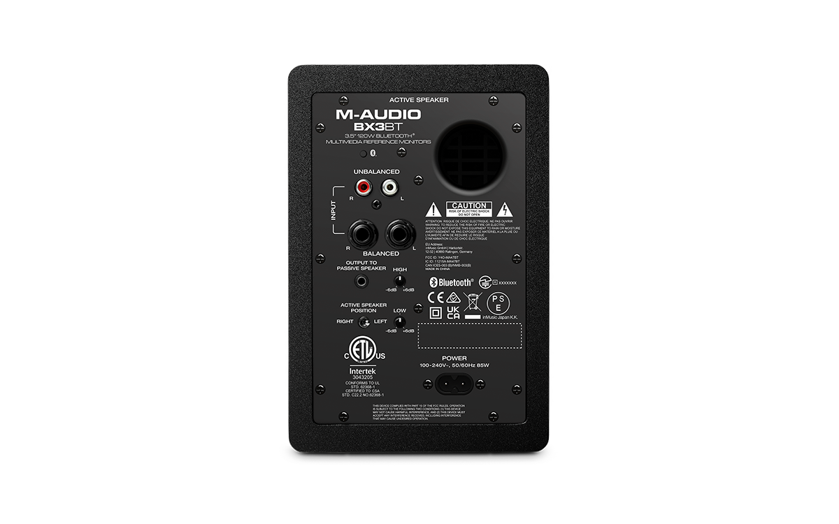 Zaprojektowane z myślą o zapewnieniu doskonałych wrażeń odsłuchowych, monitory BX3 BT firmy M-Audio zapewniają 120 W niesamowitego dźwięku w odważnej, stylowej, kompaktowej konstrukcji, która stanowi najlepsze rozwiązanie dla profesjonalnego dźwięku. Dwudrożna konstrukcja posiada akustycznie obojętną obudowę MDF z bass reflexem, która zapewnia mocne niskie tony dzięki przetwornikom Black Kevlar®. Ponadto ulepszone tylne porty i zoptymalizowane komputerowo głośniki wysokotonowe z naturalną jedwabną kopułką zapewniają pełne spektrum częstotliwości potrzebnych do tego, aby każdy utwór, film lub gra wideo brzmiały realistycznie!