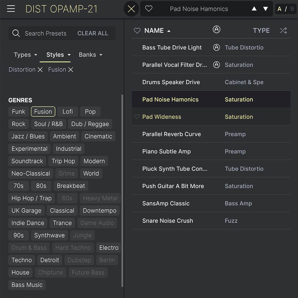 Uproszczona przeglądarka ustawień wstępnych Arturia FX Collection 5 pozwala filtrować, organizować i zapisywać ulubione ustawienia wstępne w celu ich natychmiastowego przywołania. Wyszukiwanie według typu instrumentu, gatunku, techniki produkcji i wielu innych - dzięki czemu można szybko znaleźć potrzebną poprawkę i zaoszczędzić cenny czas twórczy!