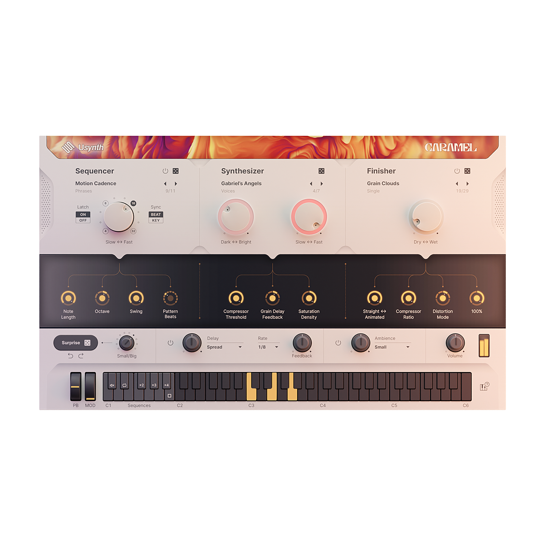 Usynth Caramel został zaprojektowany w duchu filozofii UJAM – profesjonalne brzmienie przy prostym interfejsie. Pod maską kryje się potężny silnik syntezatora, lecz całość została uproszczona, aby muzycy mogli skupić się na tworzeniu zamiast na żmudnym programowaniu dźwięku.