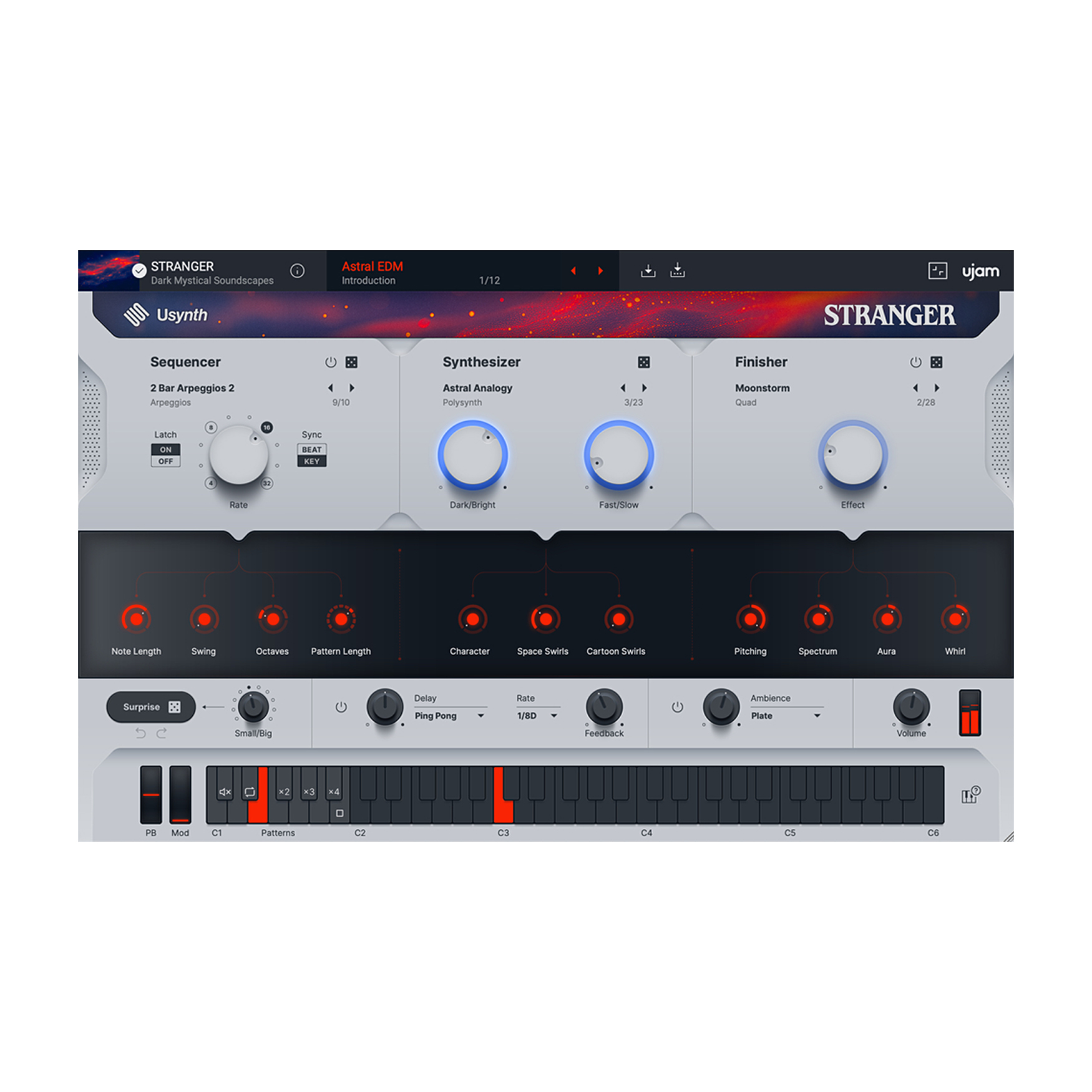 Usynth STRANGER to syntezator software’owy od UJAM, stworzony z myślą o mrocznych, nieziemskich teksturach, które przywołują klimat kultowych seriali sci-fi ostatnich lat. Za jego brzmieniem stoi projektant dźwięku Alessandro Cardinale, czerpiący z własnej kolekcji analogowych syntezatorów vintage. To instrument, który pozwala tworzyć muzykę filmową, ambientową, elektroniczną czy ścieżki do gier – bez konieczności zaawansowanej wiedzy o syntezie.