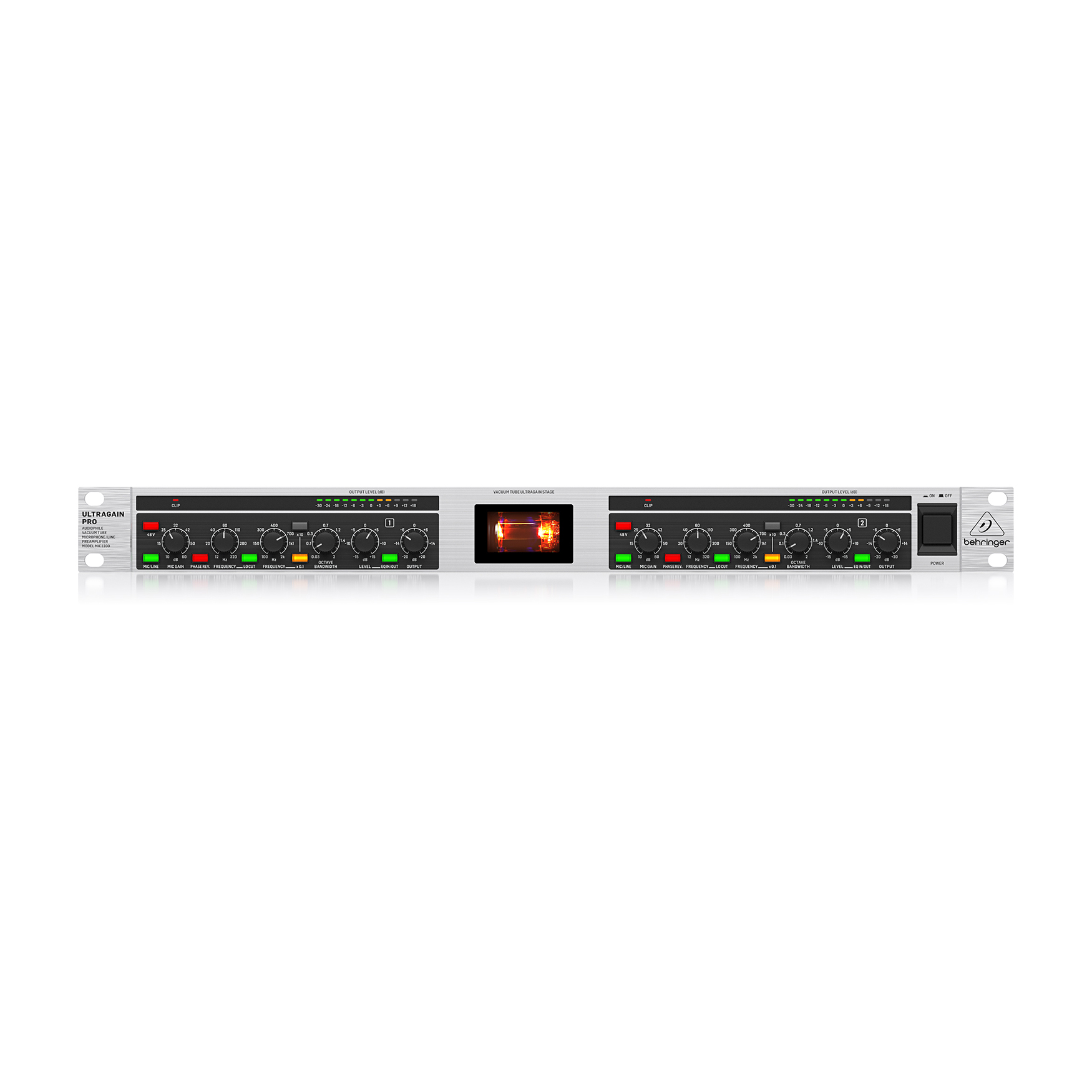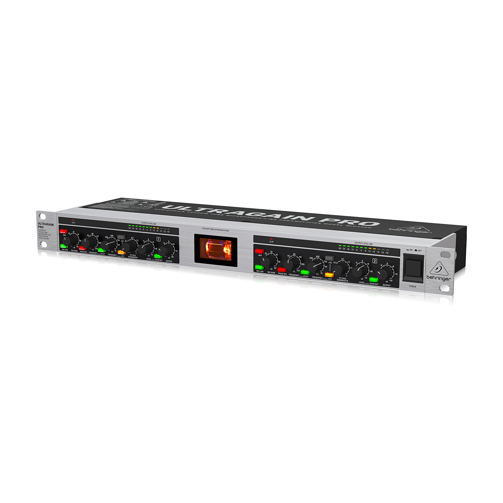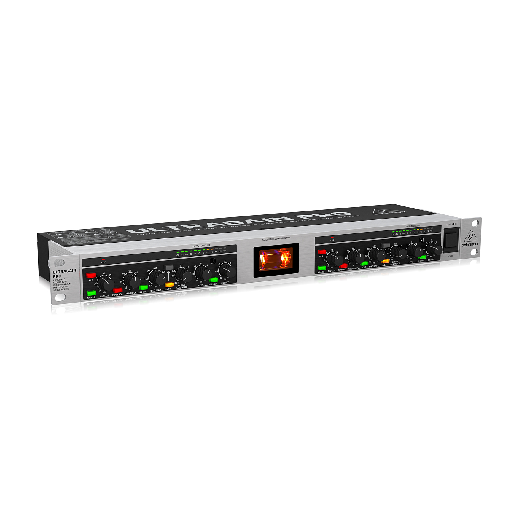 Behringer ULTRAGAIN PRO MIC2200 V2 to profesjonalny, niskoszumowy przedwzmacniacz mikrofonowy i liniowy, wyposażony w ręcznie selekcjonowaną lampę 12AX7 dla klasycznego, ciepłego i muzykalnego brzmienia. Dzięki szerokiemu pasmu przenoszenia 10 Hz – 200 kHz, wbudowanemu w pełni parametrycznemu korektorowi oraz elastycznej sekcji wejść/wyjść, MIC2200 V2 sprawdzi się zarówno w studiu nagrań, jak i w systemach live.