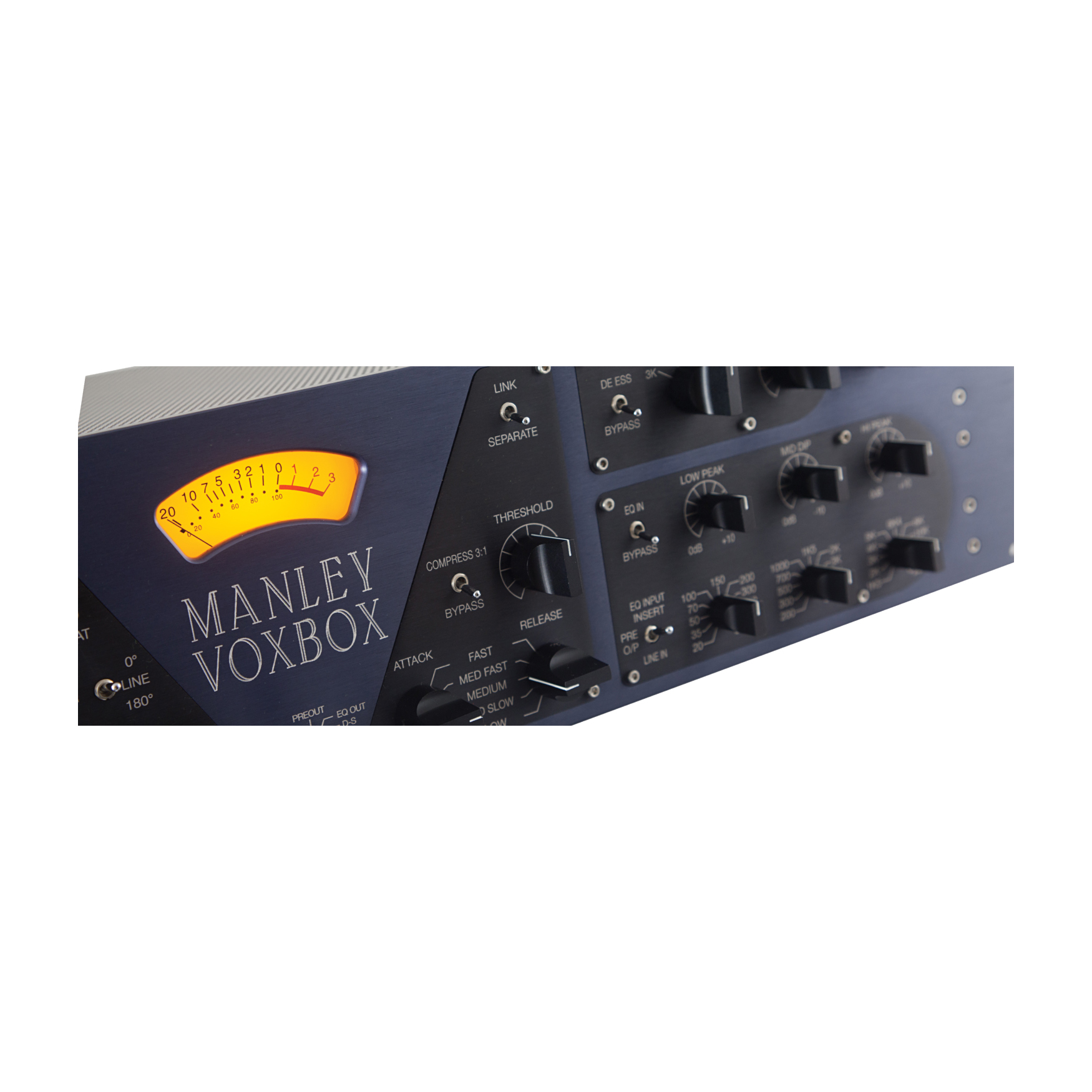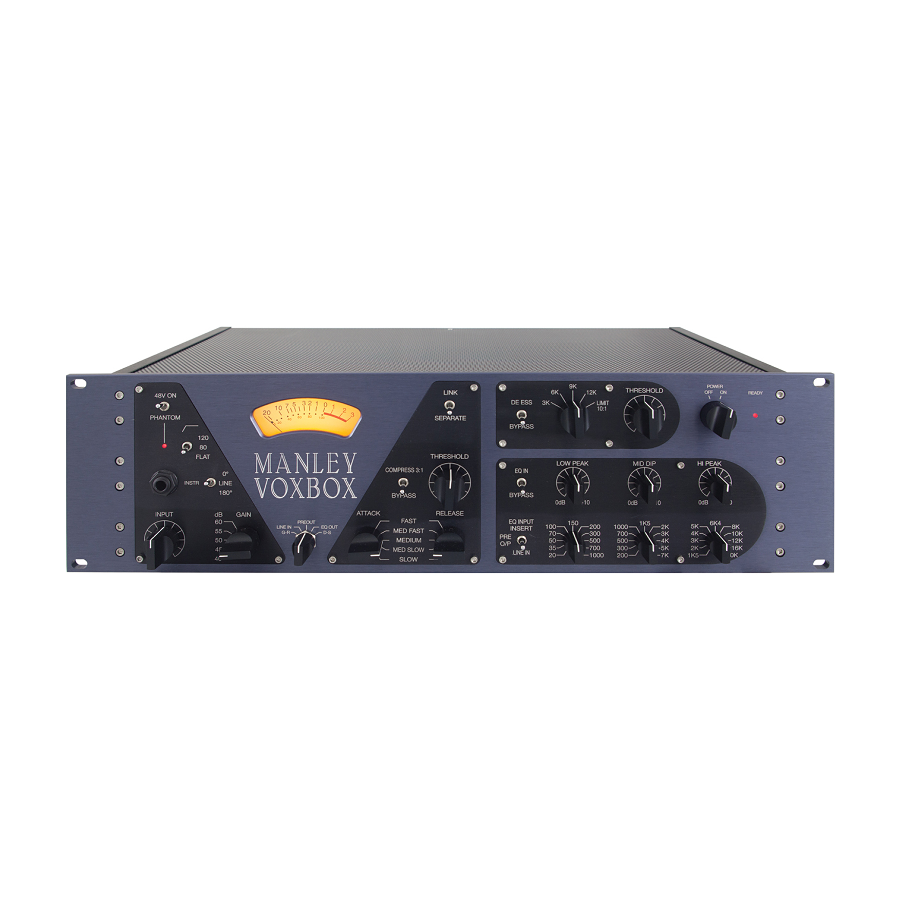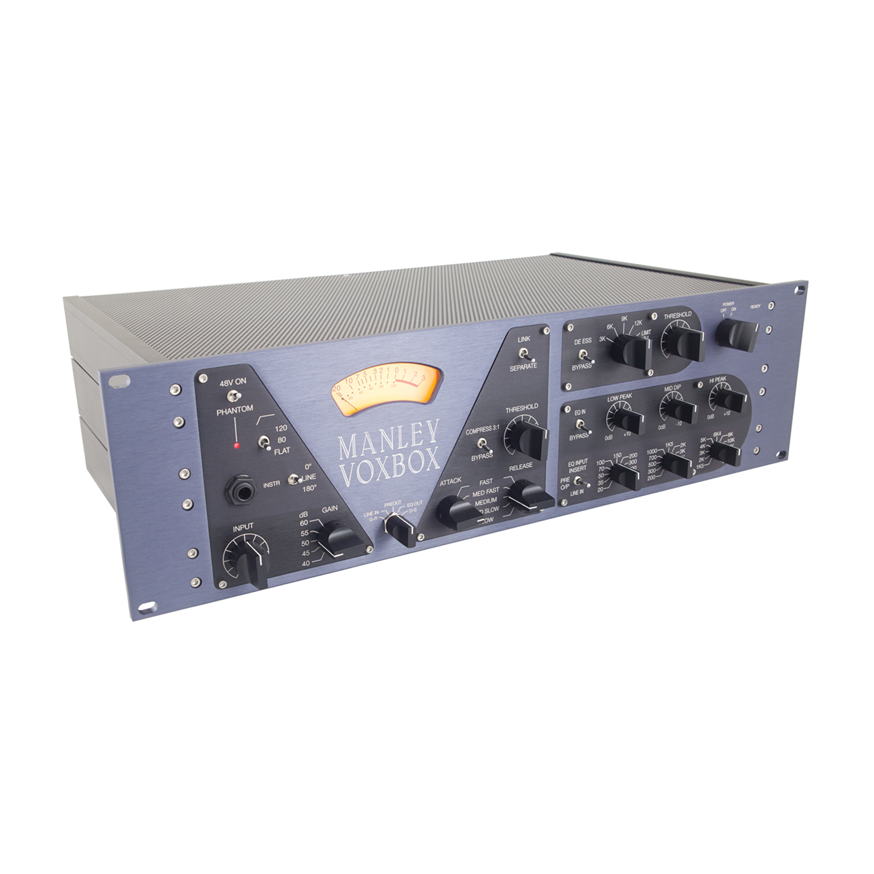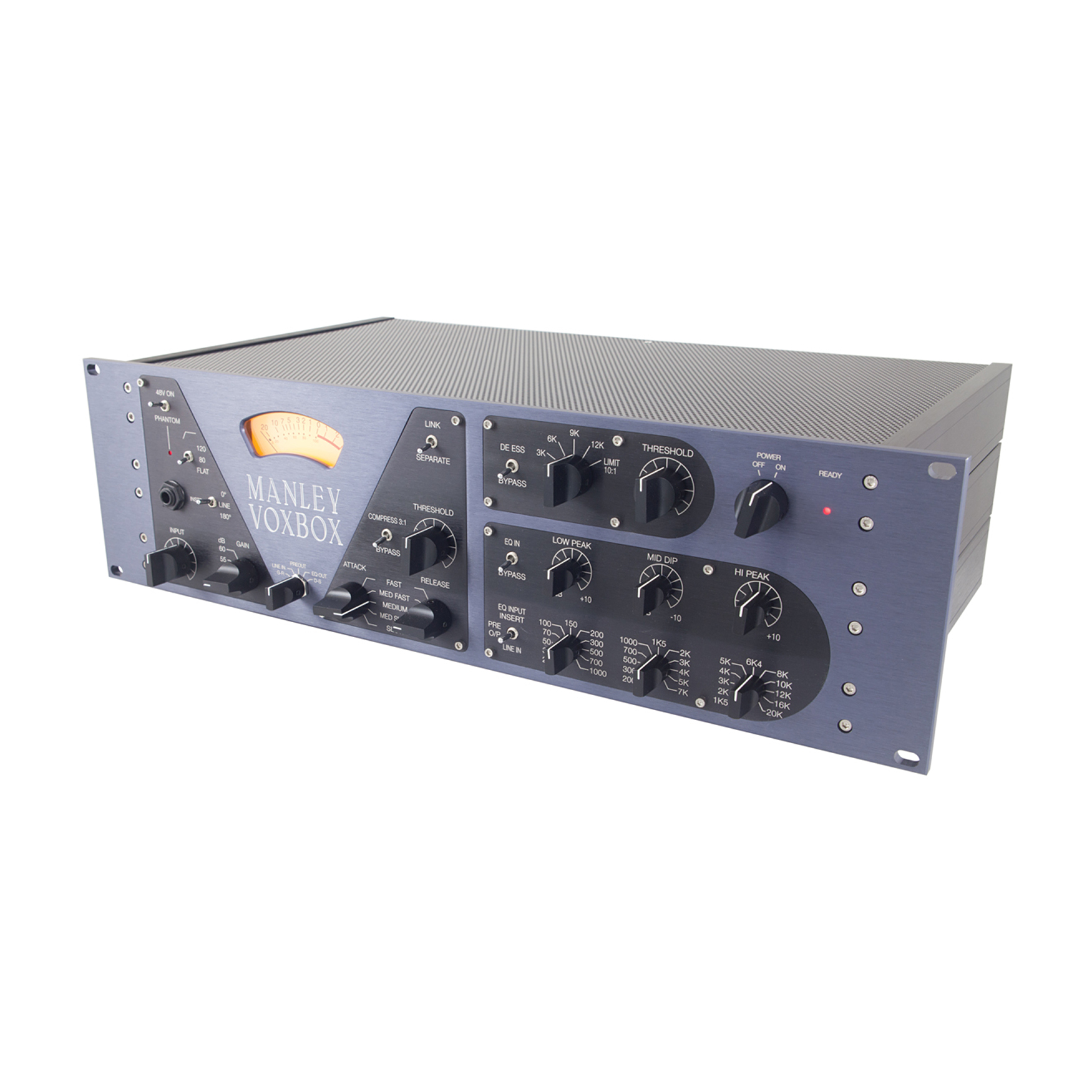 Manley Voxbox to wszechstronny procesor sygnałowy z przedwzmacniaczem mikrofonowym, kompresorem, korektorem i De-Esserem/Limiterem. Podczas gdy jednostka może być używana jako pojedynczy channel strip, może również przetwarzać 2 niezależne sygnały audio; jeden przez sekcję przedwzmacniacz mikrofonowy/ kompresor i drugi przez sekcję korektor/ De-Esser/ Limiter.