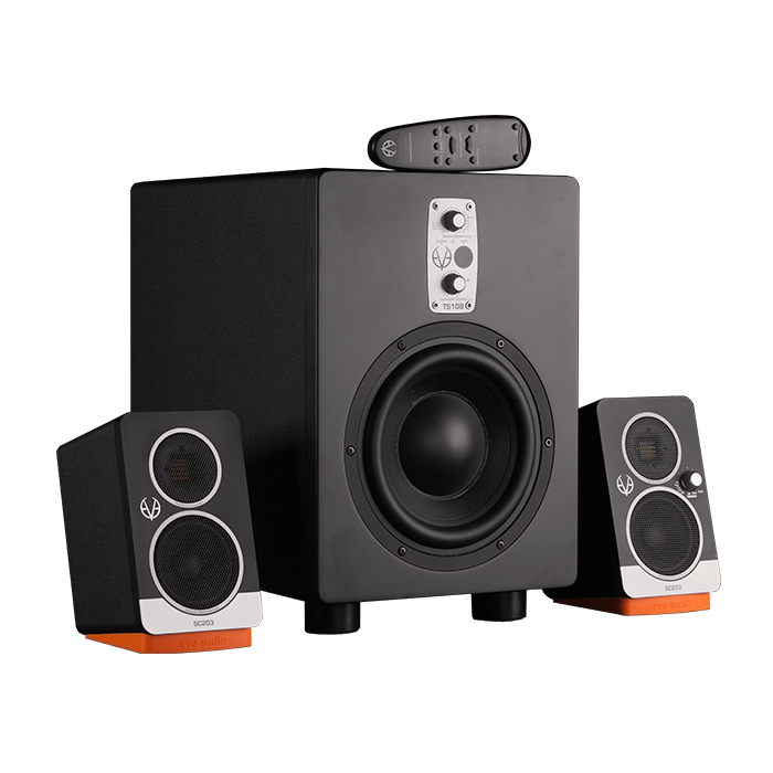 Eve Audio TS108 to zdalnie sterowany subwoofer z serii ThunderStorm z 8-calowym głośnikiem niskotonowym, zapewniającym odpowiednio prezycyjną kontrolę nad częstotliwościami basu (do 33Hz), aby wprowadzić cały system na najwyższy poziom.